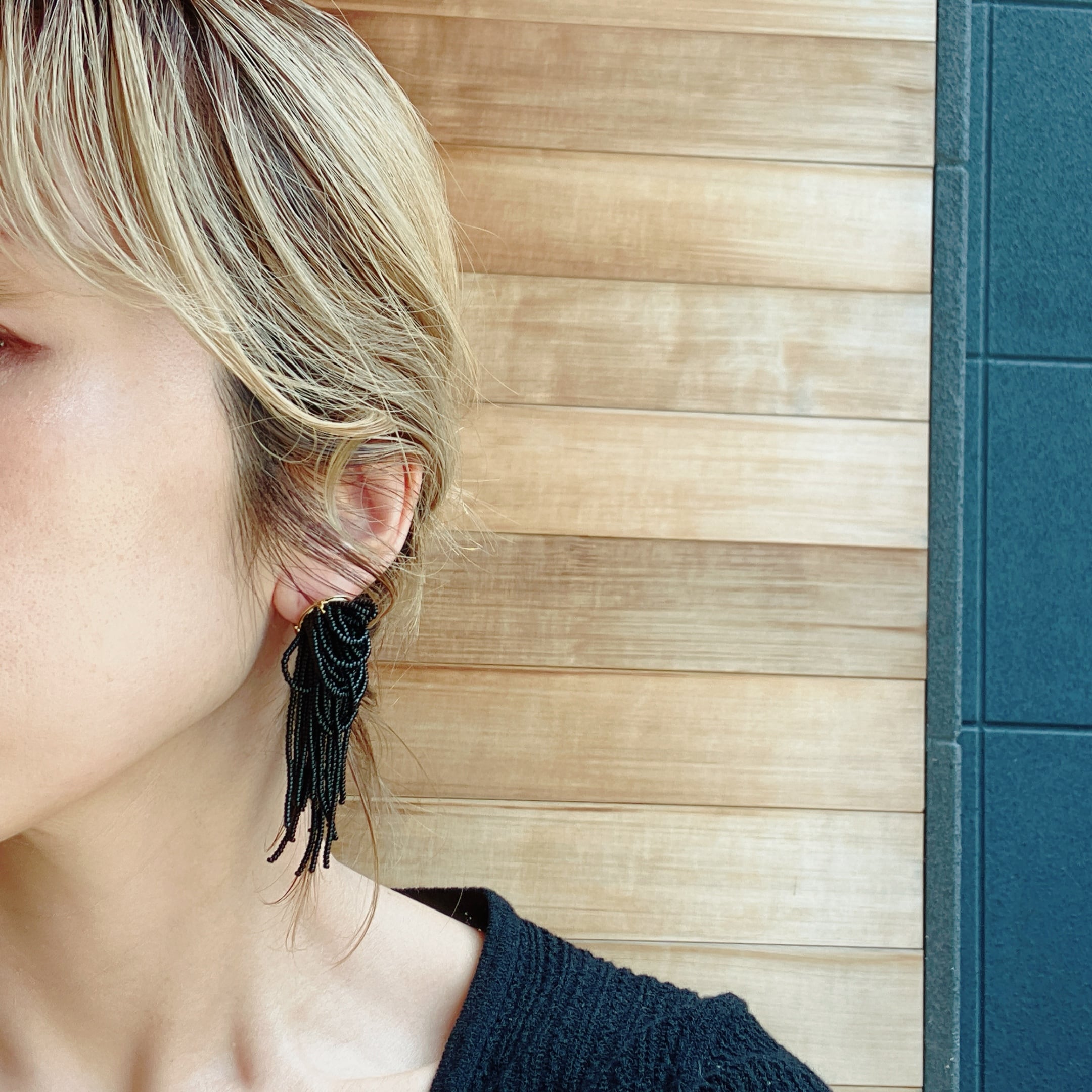 とても小さいビーズを使用したことで揺れる度に動くフリンジは軽やかでとても繊細で、