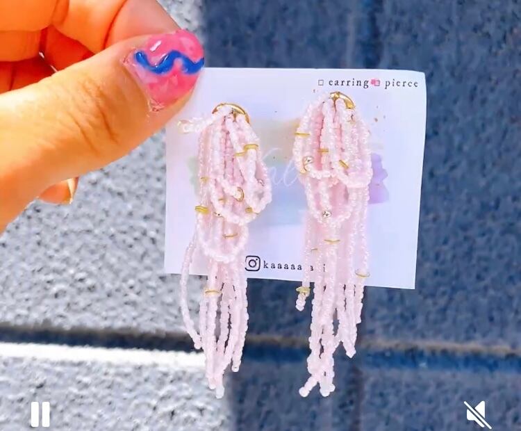 淡いピンクとミルキーなビーズの色合いが桃のスムージーのようにやさしくてふんわり。