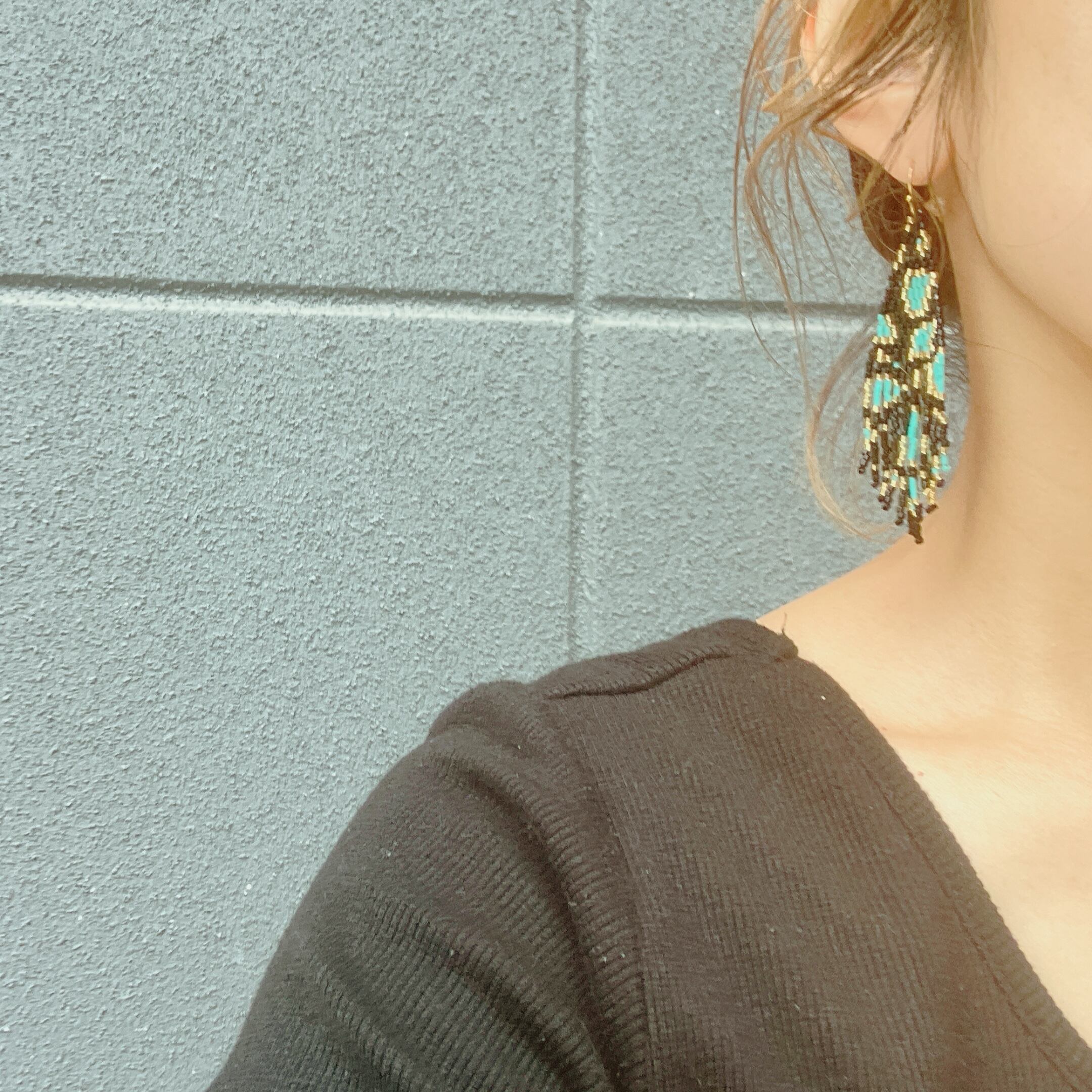 煌めくビーズがリズミカルに並び、揺れるフリンジが視線を惹きつけるポイントに。